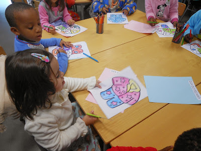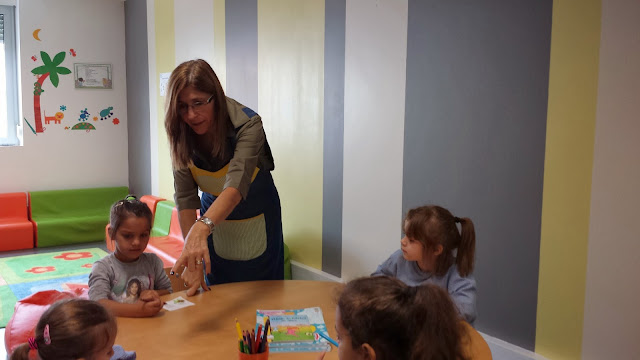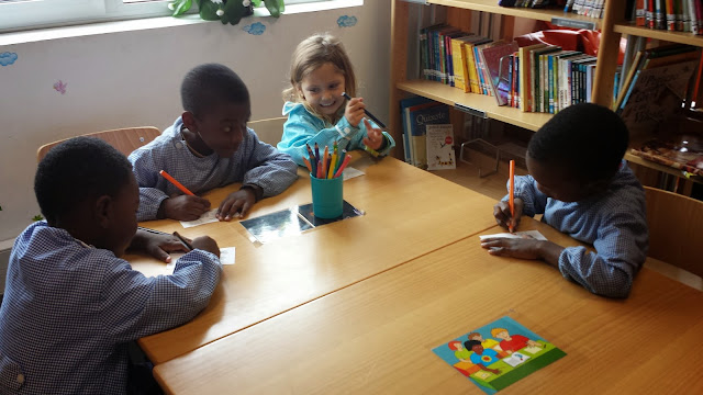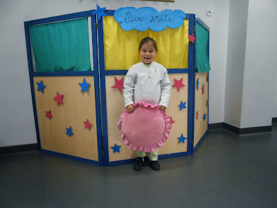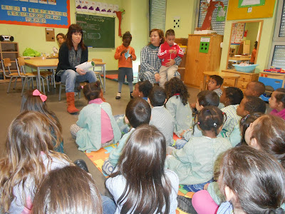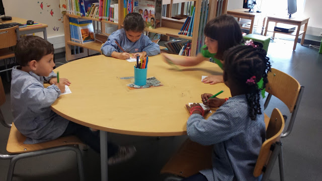 Fomos à Biblioteca da nossa escola, ouvir 4 meninos do 1ª Ciclo contar uma história "O Monstro das Festinhas". A Professora Isa deu uma ajudinha... No final pintamos um desenho alusivo à história. Porta-mo-nos muito bem!!!!!!!