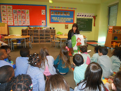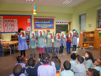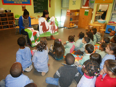 A Sala Verde e a Sala Azul reuniram-se para ouvir o conto " O Capuchinho Vermelho e o Lobo que cheirava mal", no âmbito do Projeto Trocas e Banhocas.