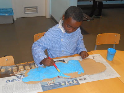 Desenhamos o nosso amigo imaginário, e percebemos que há muitos meninos de verdade que não têm uma família como nós.