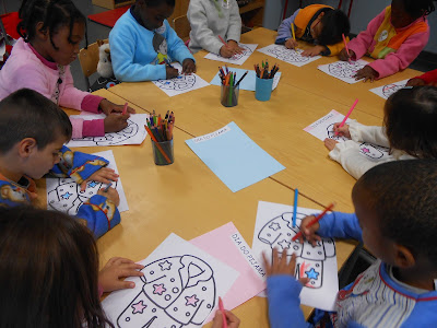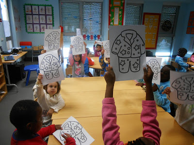 Estiveram todos muito atentos e participativos. No final fizeram o registo da história